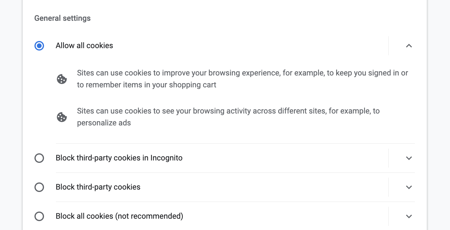 3. Make sure "Standard" is selected as this will ensure all cookies are enabled.