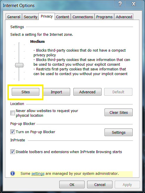 6. If you prefer to block cookies on most sites except for BocaJava.com, you can allow cookies to only be enabled on BocaJava.com by clicking "Add" next to "Sites that can always use cookies".