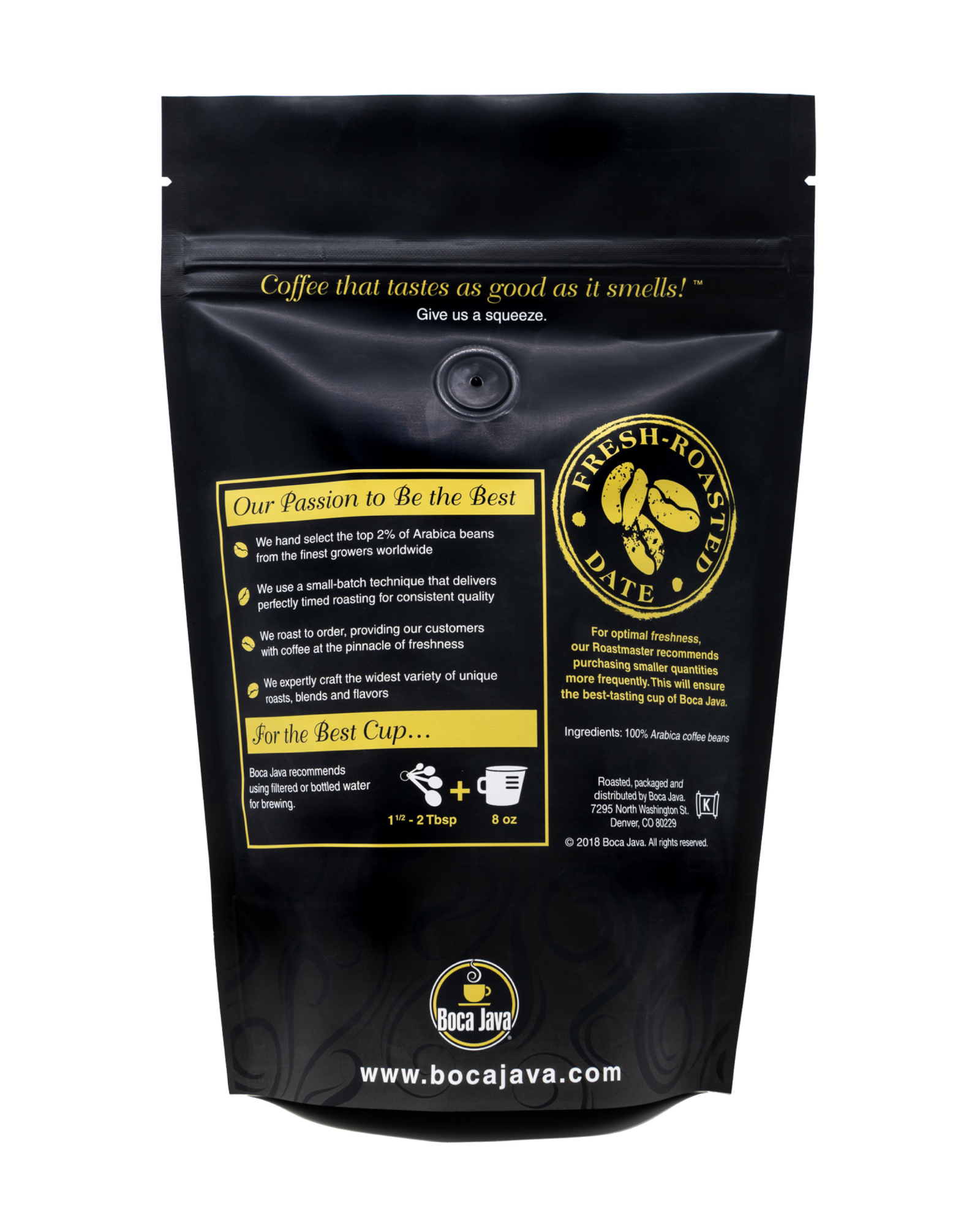 Enjoy the freshest coffee with Boca Java! Each bag is crafted to deliver exceptional flavor and the perfect cup, every time you brew.